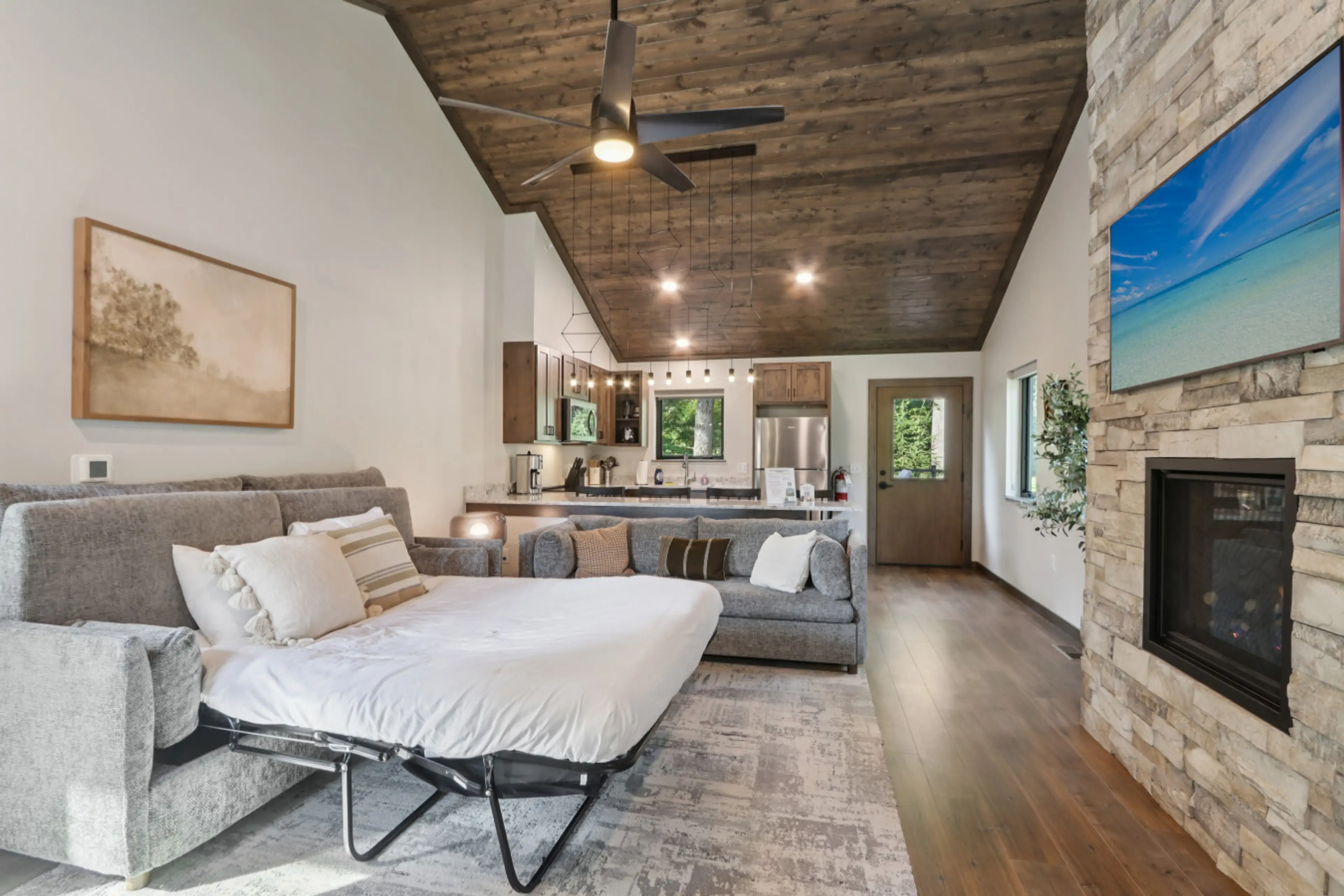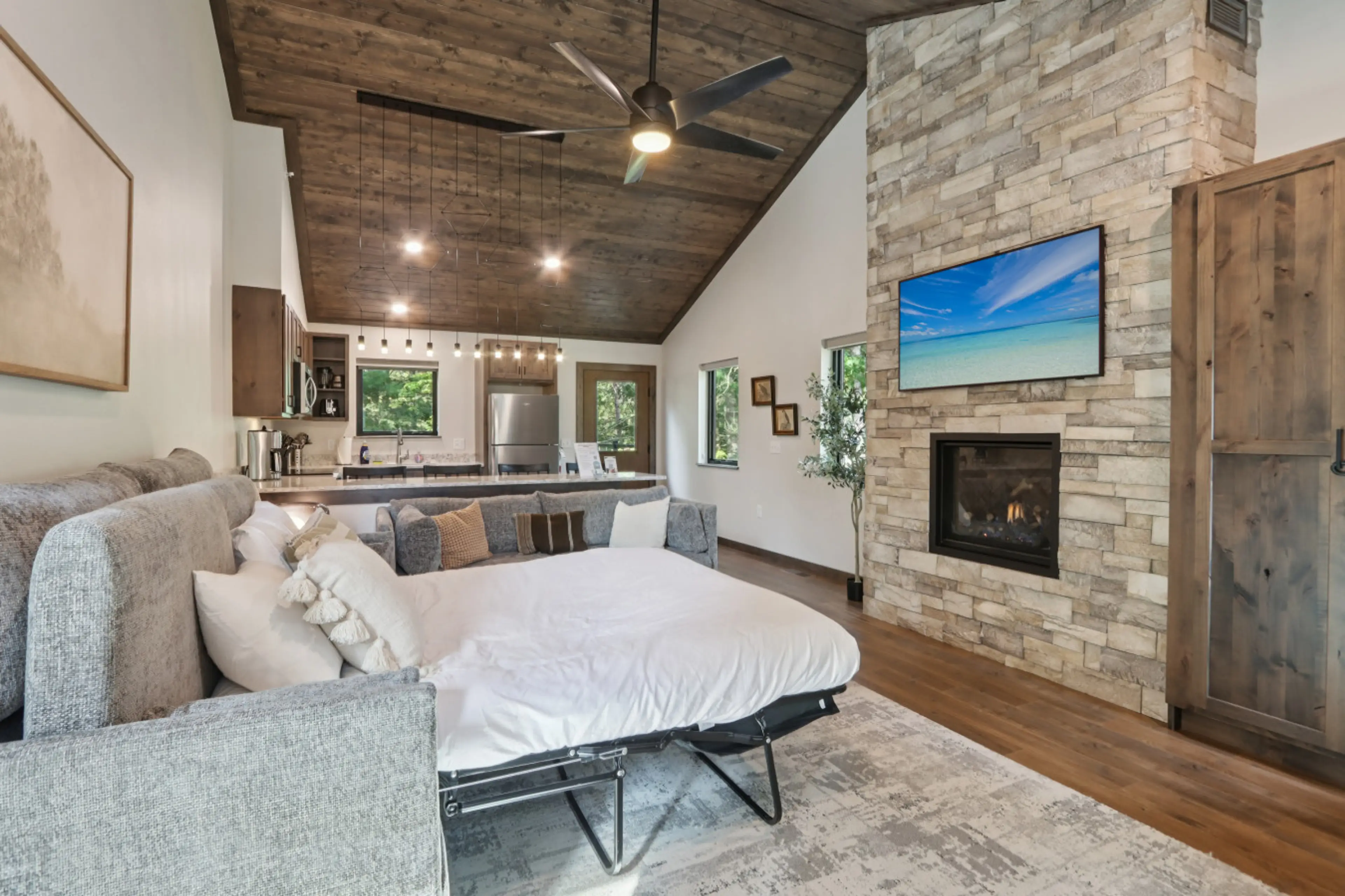 Ask us about our Noah's Ark package! Newly constructed in 2025, this property offers everything you need for a unique, luxury, Wisconsin Dells lodging experience. Built on a hill, this treehouse experience allows you to enter without stairs on the front side and dance with the squirrels on the ba...